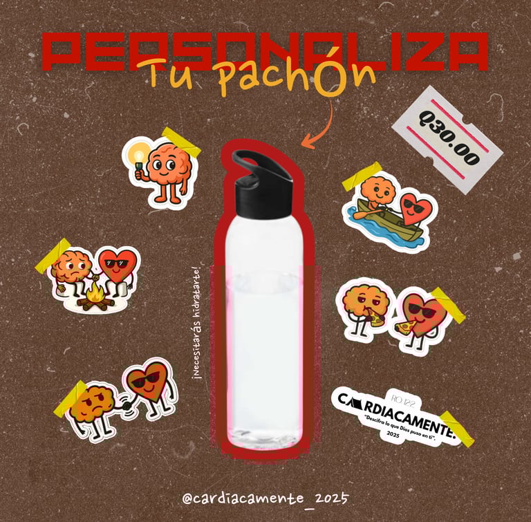Tendremos dispensadores de agua todo el tiempo, y con el fin de ser ecológicos y no generar basura de botellas, te ofrecemos este hermoso pachón personalizable, donde tú le pegarás tus stikers, sino lo lograste adquirirlo en la oferta de Inscripción, esta es tu oportunidad.